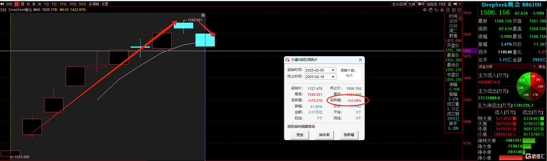 整体来看,自2月5日至今,A股Deepseek概念累计涨幅超33%。