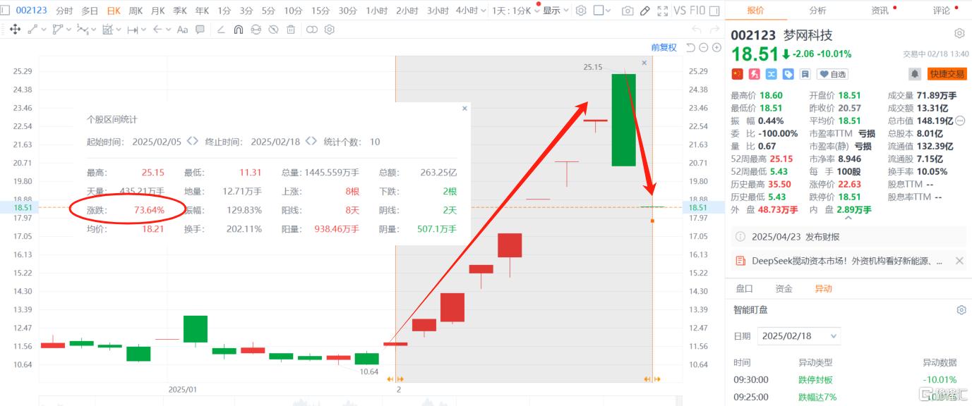 开年以来,该股也是一路狂飙,2月5日至2月14日,梦网科技 (SZ:002123),期间股价涨幅逾114%。