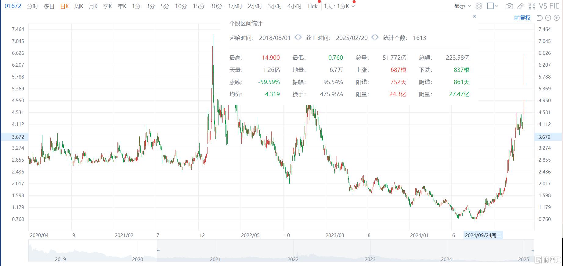 随后,公司股价就一路下行,期间虽有几个小反弹,最低时一度触及0.76港元/股,近乎“归零”,