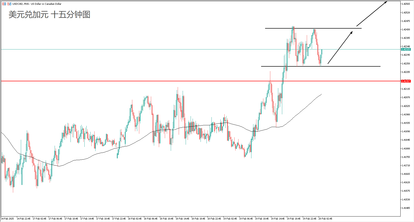 交易策略:(趋势跟随)1.422附近波段看涨,或突破1.425跟随看涨