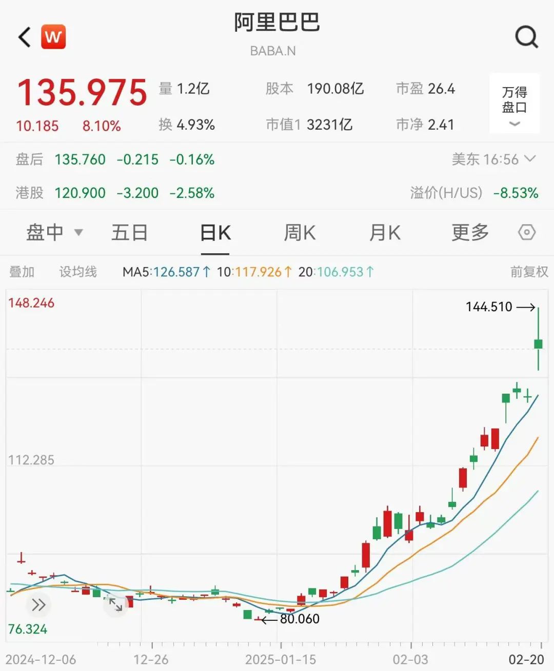 2025年以来,阿里巴巴美股股价已经显著上涨,截至2月19日美股收盘,阿里巴巴美股累计上涨幅度达48.35%。摩根大通分析师认为,阿里巴巴股价上涨主要受三大因素推动:市场对阿里云的估值过低,考虑到阿里云在生成式AI方面的进展和潜在回报,以及其在中国云市场中的领先地位,目前的股价并未充分反映阿里云的真实价值;随着AI功能消费的增加,阿里云的营收预期可能会上调。