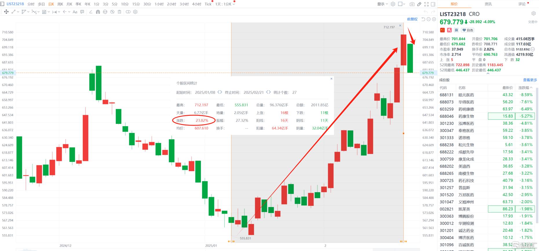 自2月14日发起猛攻起,港A生物医药、CRO板块截至上周均保持着强劲态势,期间分别累计涨幅超23%、14%。