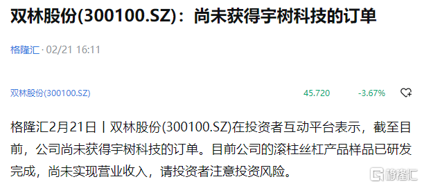 双林股份,主营业务的汽车座椅水平驱动器与人形滚柱丝杠产品在技术研发方面有同源性,在螺纹、齿轮加工等生产工艺有相通性,于是宣布进军行星滚柱丝杠领域。但要注意的是,