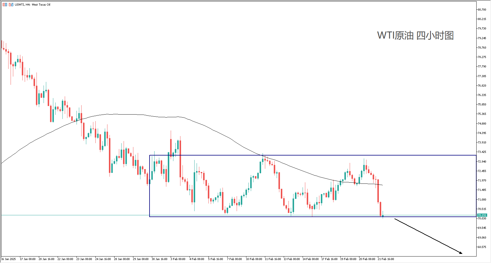 技术面:100均线保持向下,价格正处在箱体震荡区间。日内消息面空头动能非常显著, 不过油价在70整数位大关暂时受阻。短线交易策略要关注是否能够向下突破,一旦突破则向下看至68关键支撑。