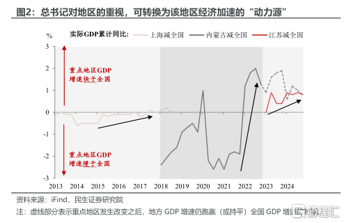 从近年的经验来看,总书记参加的地方代表团审议,背后政策信号确实很“不一般”。回顾十八大以来地方代表团审议的主要内容,从重点地区来看,发生了“上海→内蒙古→江苏”的转变,在总书记“特别关注”后,这些地区的经济增速都会按下“加速键”;从相应的核心议题来看,发生了“创新→人民、中华民族共同体→高质量发展、新质生产力”的转变。