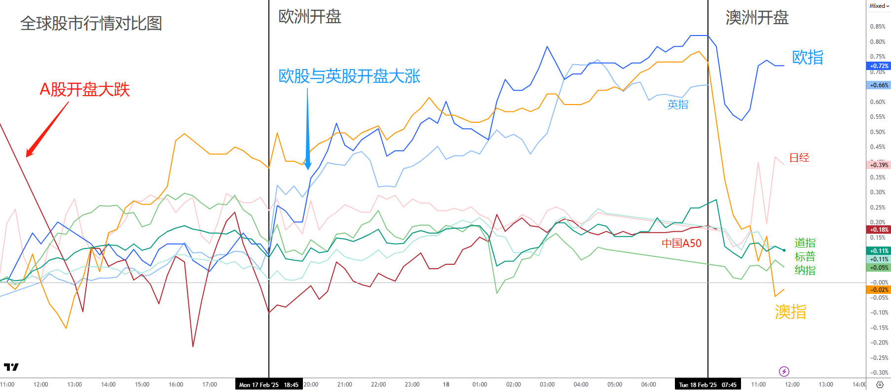 其他股市:表现层次不齐。中国A股开盘大跌,表现相对落后。日经指数同样水平震荡,只是在今早日元大跌时,日股反弹。表现最好的是欧洲与英国指数,国防股带动整个大盘一同上涨。澳股昨日同样表现不俗,但今早开盘却遭遇重创,金融与材料板块全面下跌,令澳指一跃成为最差指数。