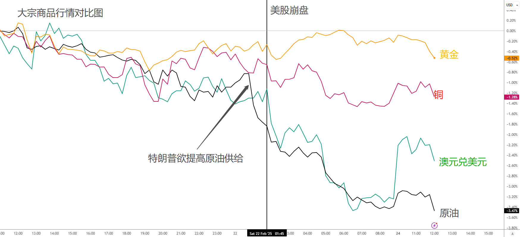 美股的崩盘令大宗商品集体下跌,尤其在特朗普用制裁逼迫伊拉克违背OPEC减产计划,恢复库尔德石油出口之后,WTI油价暴跌,直接从72美元跌至70美元大关。黄金体现了一定的避险功能,但最终表现仍然不佳。不过今日开盘,铜与原油均出现小幅跳涨,表现与澳元趋同。