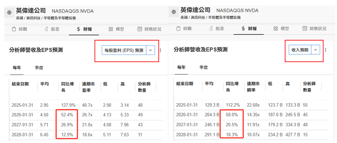 英伟达营收、盈利增速预测,来源:InvestingPro