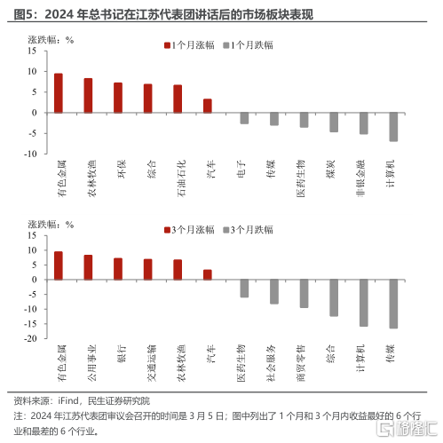 首先需要关注的,是总书记地方代表团的审议讲话,其传达出的政策脉络“清晰度”不仅更高,也更能定调两会后的“优先事项”。比起《政府工作报告》对经济工作部署的“全面铺开”,两会期间总书记参加地方代表团审议会更多是“开门见山”、直击主题,这一主题不仅是部署了该地区这一年经济工作的重点,甚至是定调了未来几年全国经济发展的“抓手”。