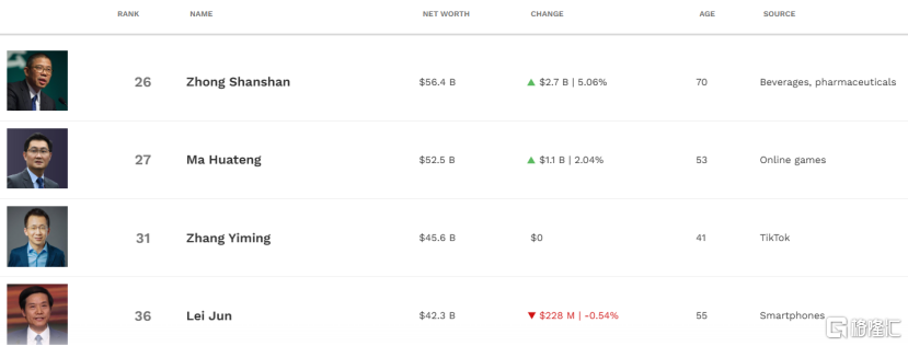 据福布斯实时富豪榜单显示,钟睒睒以564亿美元财富排名中国第一,雷军以423亿美元财富排名第四。