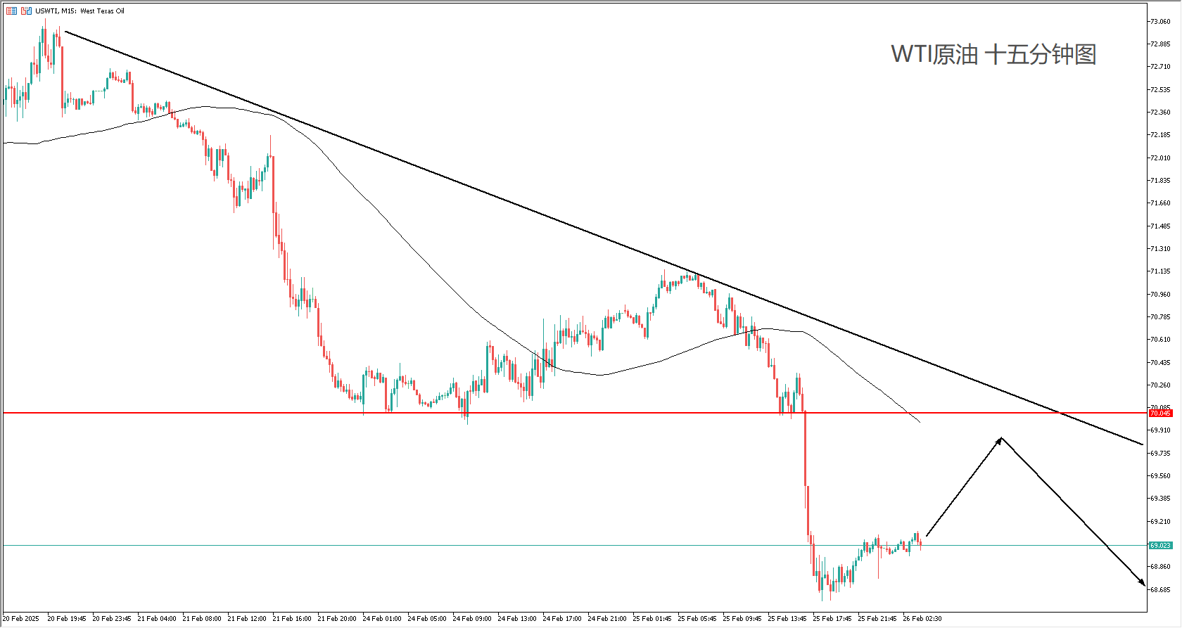 技术面:100均线向下,趋势线提供阻力,油价已经跌破了关键水平多重支撑70整数位大关,空头力量非常沉重。交易策略以稍许回踩后分批高位做空。