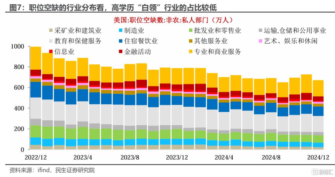 若仅仅看联邦政府雇员失业,影响可控:截至2024年底,联邦政府(除美国邮政)雇员占非农总体的1.5%,2024当年新增就业占非农总体的2.6%。如果联邦政府冻结招聘,预计将对非农新增就业数据造成2-3个百分点的影响;每有17万员工被裁员且无法找到工作,将推升失业率0.1个百分点。极端假设下,一半的联邦雇员同时转为失业人口,将推升失业率0.7个百分点。