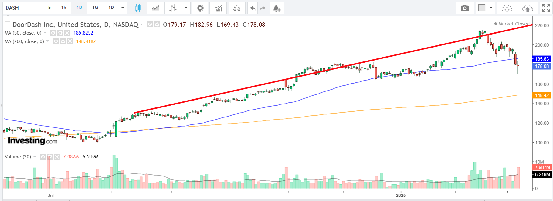 入选标普500指数凸显了DoorDash的成长性和稳定性。由于跟踪标普500指数的指数基金和其他被动投资工具需要根据指数成分股调整持仓,这可能引发市场大量买入DoorDash。
