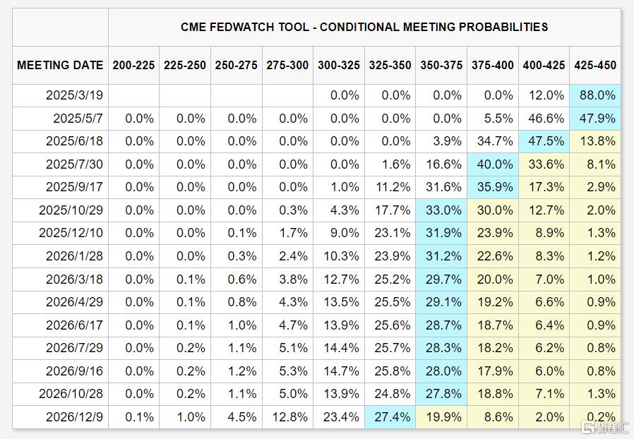 目前市场普遍预计,美联储3月维持利率不变的概率为88%,到5月维持当前利率不变的概率为50.8%,6月降息的概率为47.5%。