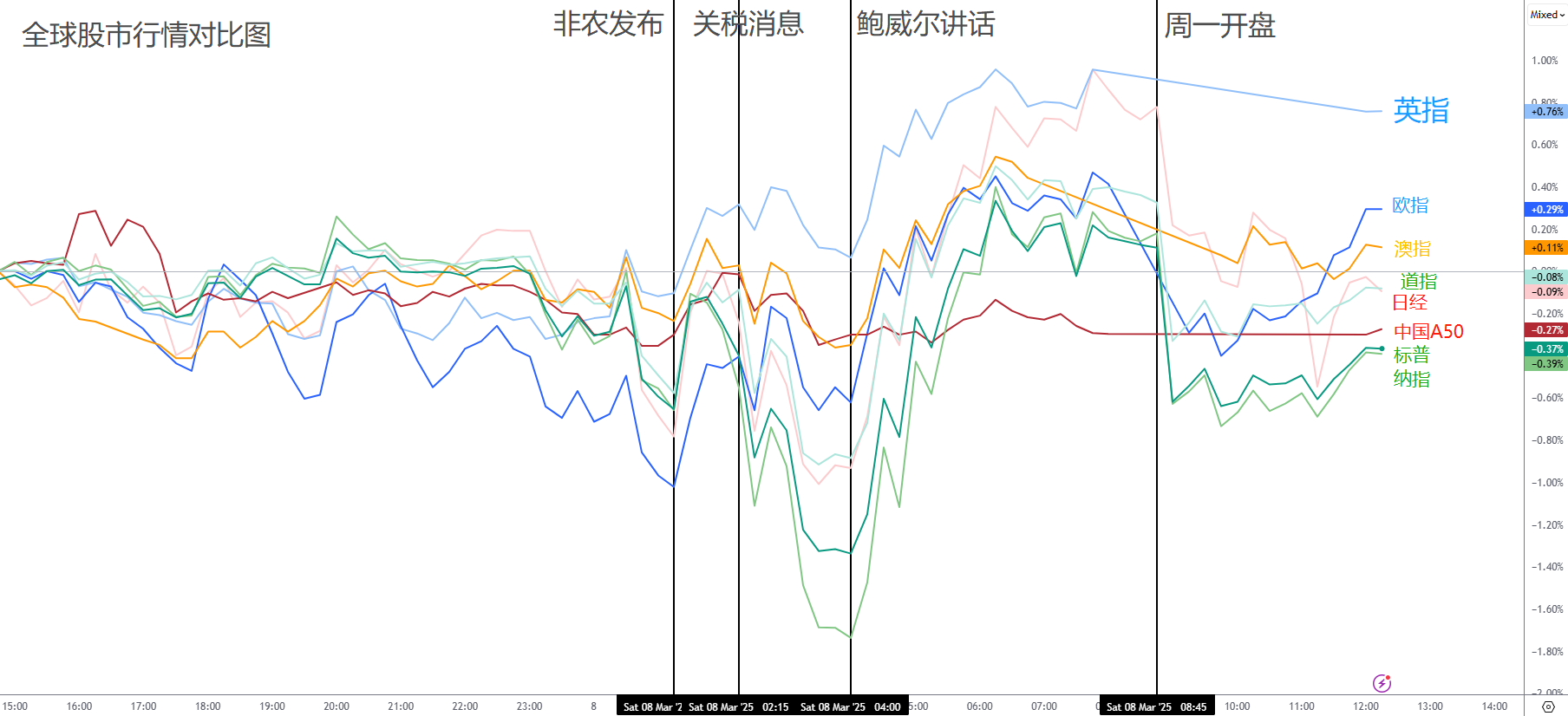 美国股市:非农发布时,几乎平于预期的非农缓解市场对衰退的担忧,美股小幅反弹。不过在美股开盘后,特朗普重申了对等关税,并表示将对俄罗斯实施大规模制裁,令美股瞬间暴跌,由科技板块领跌。