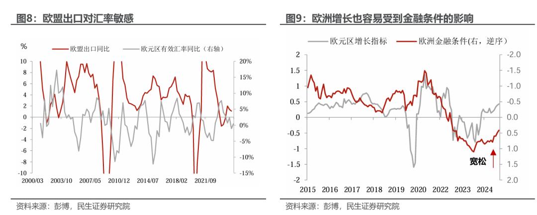 经济层面,在美国经济明显放缓、关税风险不断的背景下作为典型的开放型经济体,欧盟的经济很依赖出口(商品和旅游服务等),欧元如果出现升值“抢跑”,很可能在财政支出还没发挥内需作用的情况下,出口增速下滑就先行显现。除此之外,德国经济本身仍尚处于衰退的边缘。