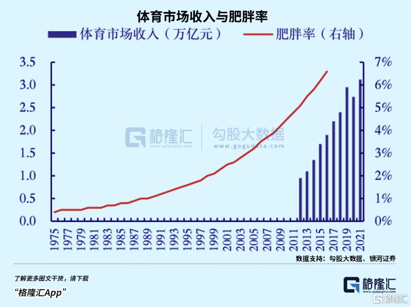 而从过往来看,体育市场收入一直伴随着肥胖率的攀升而不断扩容。