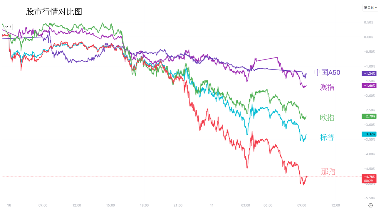 但是在市场看来 ,『不排除』经济衰退就等于默认衰退,而且也代表特朗普不在乎股市下跌,让那些原本还相信特朗普会救市的投资者大失所望,投资情绪进一步恶化,从美股开盘起,全球股市加速下跌,最终全球股指全数走跌。