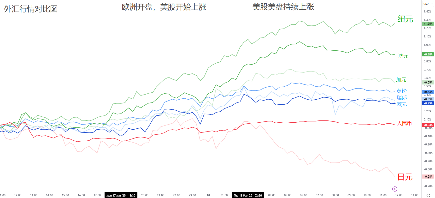 日元:和美股完美反向,美盘美股涨得最好的时候,恰恰是日元跌的最凶的时候。