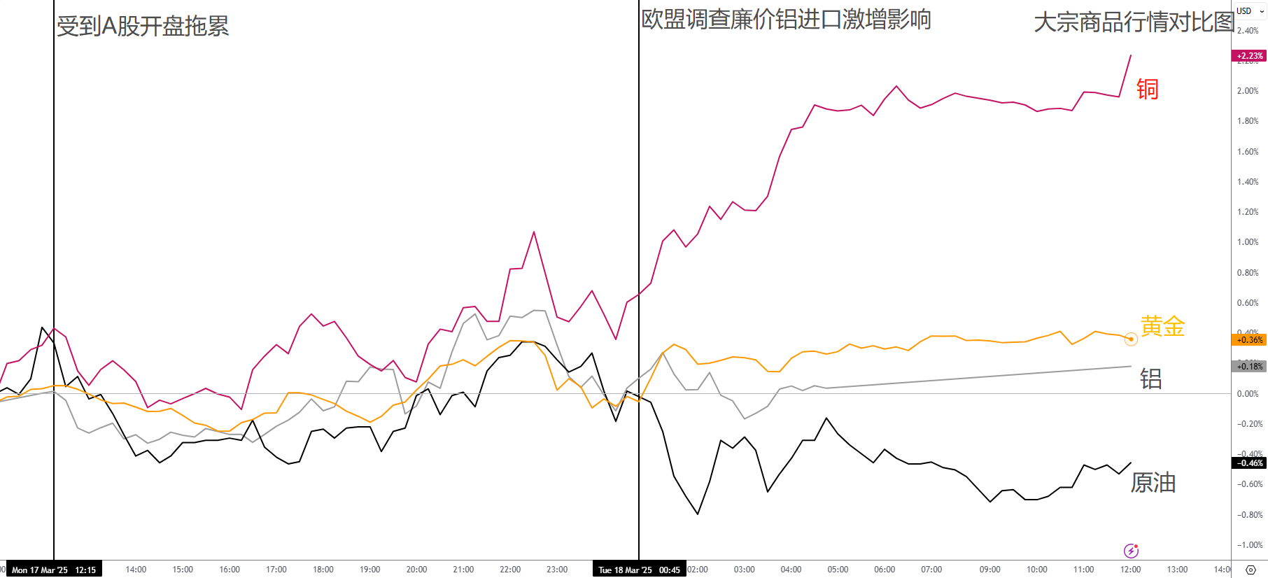 受到关税转移需求影响,铜在所有金属中表现最佳。虽然早盘受到A股拖累,但看涨趋势不变。