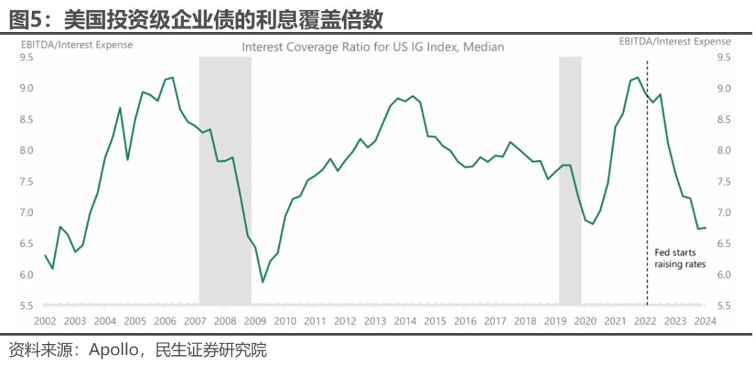 信用债OAS利差自2022下半年以来持续下降、目前历史低位,信用环境仍在历史极宽松的区间内,企业融资十分容易;盈利增速较疫情之前加快;偿债指标改善。