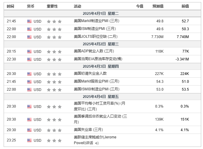 同时,本周五(4月4日)公布的3月,预期新增就业职位13.9万个,失业率则维持在4.1%。