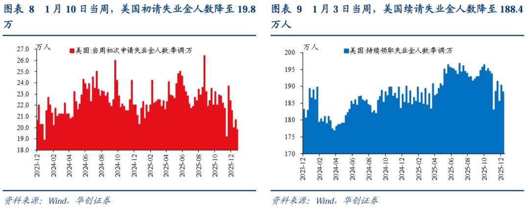 初请失业金人数回落,好于预期。1月10日当周,美国初请失业金人数降至19.8万,前值20.8万,预期21.5万。