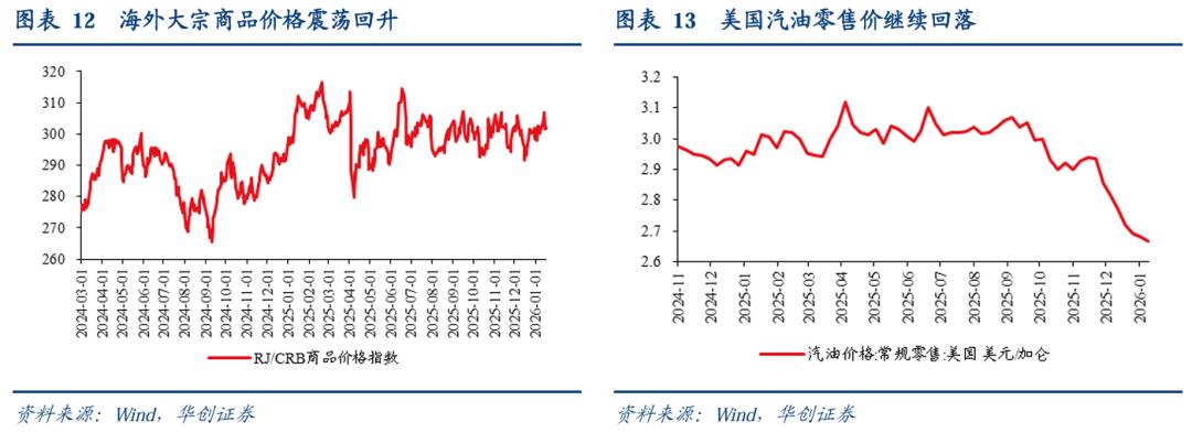 海外大宗商品价格震荡回升。1月16日,RJ/CRB商品价格指数周环比+0.2%,前一周环比+1.2%。