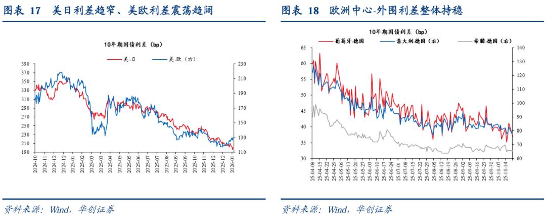 美日利差趋窄。截至1月15日,10年期美日国债利差为200.6bp,较上周五收窄7.8bp。