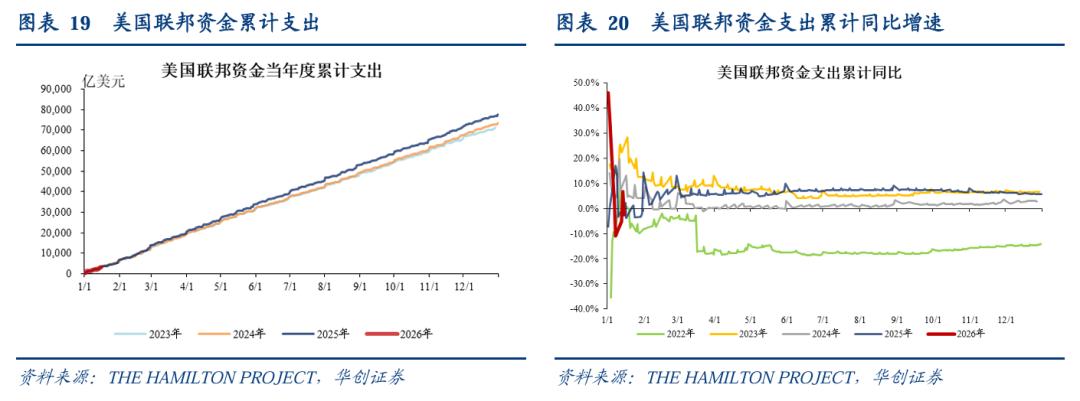 2026年截至1月15日,美国联邦资金累计支出约3194亿美元,同比增速-2.5%;去年同期累计资金支出为3276亿美元,去年截至1月16日的累计同比增速为2.4%。